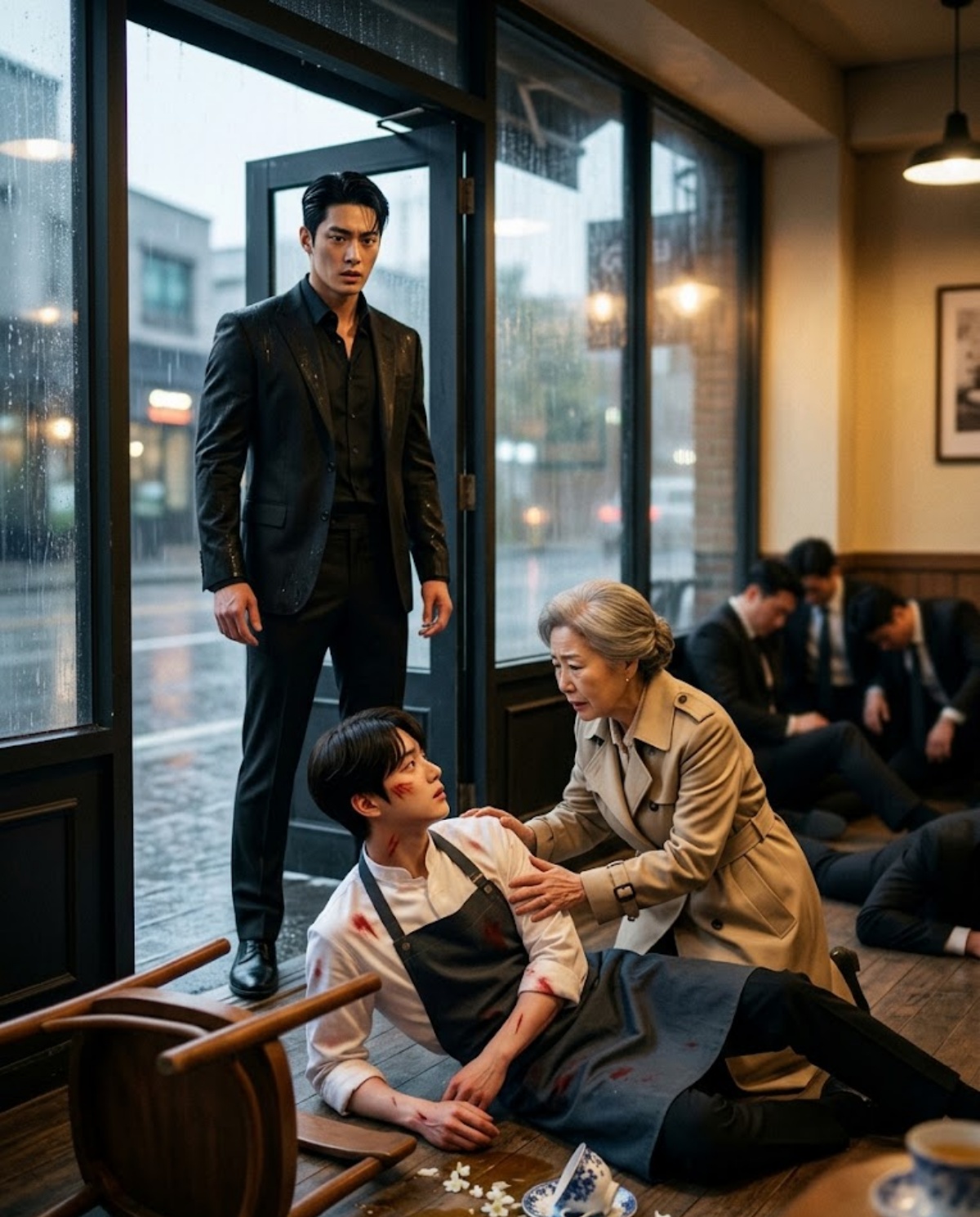 Caí al suelo junto a la señora Park, mi cuerpo formando una barrera protectora entre ella y los hombres armados. La sangre comenzó a empapar mi uniforme blanco del café, flores rojas expandiéndose por la tela.