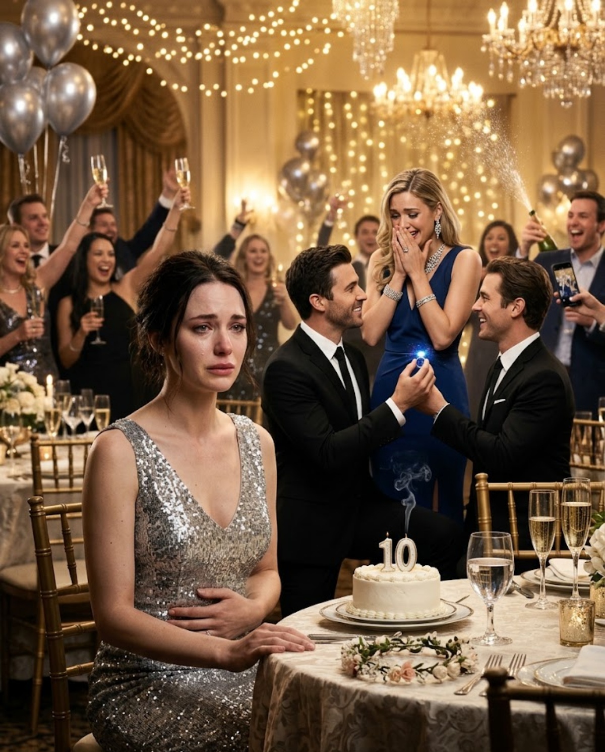 Tenía veintinueve años, un vestido plateado que elegí porque Eric decía que me hacía parecer luz de luna y un dolor sordo en el bajo vientre que llevaba días ignorando. Mi mano descansó allí por reflejo, apenas presionando. Nadie lo notó. Nadie me estaba mirando.