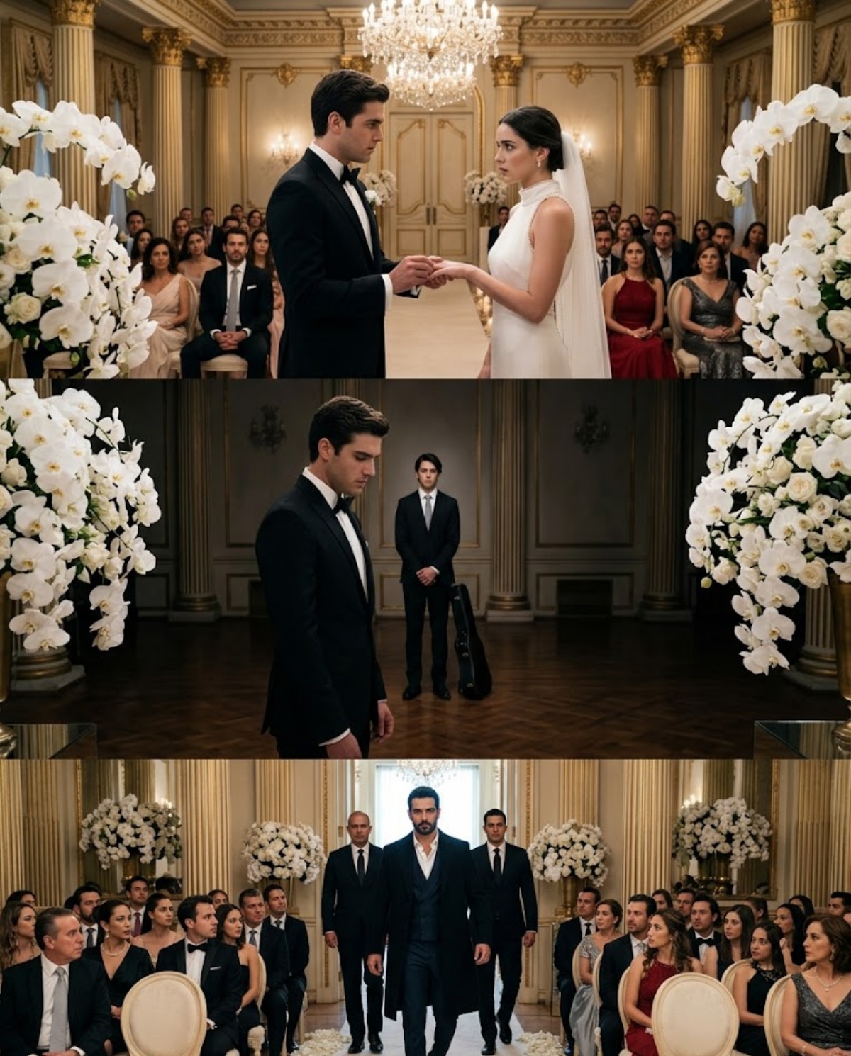 Había orquídeas trepando por columnas doradas, candelabros de cristal que multiplicaban la luz sobre los rostros de los invitados, sillas forradas con listones de seda color marfil y una alfombra clara que conducía hasta un altar cubierto de rosas. Todo era elegante. Perfecto. Casi irreal.