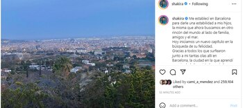 El mensaje de Shakira a través de su cuenta de Instagram, en la que se despidió de Barcelona y las personas con las que compartió allí