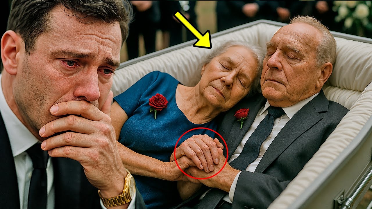 Amanda, su esposa, corrió hacia él, le tomó la mano con cuidado, buscando devolverle seguridad. “Amor, cálmate. Fui yo quien organizó todo”, dijo en tono suave, con mirada preocupada. Diego escupió la respuesta: “Entonces dime, ¿por qué están en el mismo ataúd? ¿Intentas ahorrar en la tumba o qué?” La expresión de Amanda no cambió; respiró hondo y, con voz baja pero firme, dijo: “Fue un deseo de ellos. Lo hicieron por una promesa, ¿recuerdas? Cuando renovaron los votos este año.”