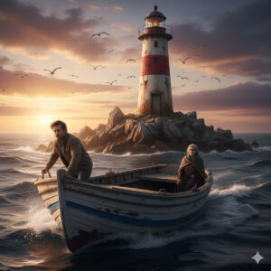 Amarró el bote con precisión y subió los escalones del faro como quien entra a un lugar sagrado. Al verla, su gesto se endureció un segundo, no por horror, sino por concentración: la fragilidad ajena exige cuidado.