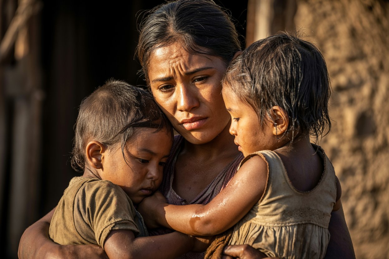 Se giró. La visión era desgarradora. Una mujer joven con el cabello oscuro pegado al rostro por el agua, temblando visiblemente. Y a sus faldas, aferrados como pequeños náufragos, dos niños. Estaban empapados hasta los huesos, sus ojos grandes reflejaban una mezcla de miedo infantil y una esperanza desesperada.