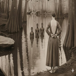 La comunidad esclavizada ahora estaba aterrada: dos de sus hombres más fuertes se desmoronaban ante sus ojos. Los susurros se hicieron insistentes: la señora los estaba matando, los envenenaba, les hacía “trabajo de raíces”. Algunos recordaron antiguos relatos africanos y caribeños de personas capaces de robar el alma y convertir hombres fuertes en cascarones vacíos. Dayna, anciana del Congo respetada por su conocimiento de hierbas, abordó a Josiah una tarde de junio; le rogó que contara qué les hacían. Él la miró con esos ojos vacíos y no dijo nada. Dayna le intentó dar un talismán protector: una bolsita de raíz y piedra; Josiah la dejó caer y se fue. En un paso raro y arriesgado, Dayna acudió al capataz Marcus: le dijo que la señora les hacía algo terrible en el arroyo, drenando su energía vital. Marcus desestimó como superstición y amenazó con azotes si difundía historias. En privado, sin embargo, Marcus ya tenía sus propias sospechas.