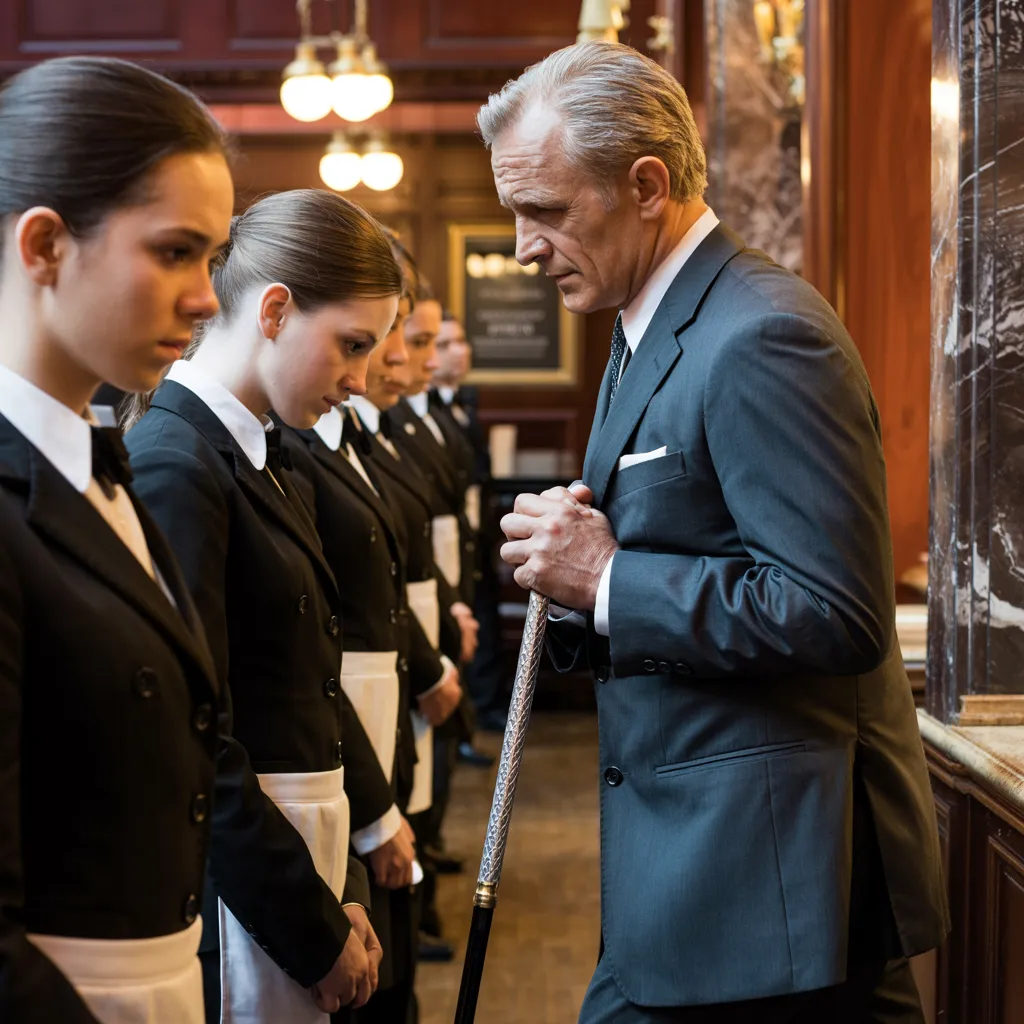 Pero la sala se congeló por el hombre que venía detrás: Don Salvatore Moretti. Tenía sesenta y tantos años, apoyándose fuertemente en un bastón de ébano con cabeza de león de plata. Su rostro era un mapa de cicatrices y arrugas profundas tras gafas tintadas. El silencio se apoderó del restaurante. Henderson prácticamente vibraba de los nervios mientras balbuceaba bienvenidas.