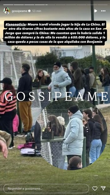 El sábado por la mañana, la China Suárez y Mauro Icardi fueron vistos juntos en el partido de hockey de Rufina Cabré, la hija mayor de la actriz con Nicolás Cabré. El encuentro tuvo lugar en un country del Gran Buenos Aires, donde coincidieron también el actor y su actual pareja Rocío Pardo. Aunque no hubo interacción directa entre las dos parejas, compartieron espacio con aparente cordialidad, pese a que en ocasiones anteriores se habían mostrado más cercanos. También estuvo presente Magnolia, hija de Suárez y Benjamín Vicuña, quien acompañó a su hermana mayor en la cita deportiva.