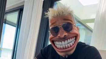 Sin poder contener la risa, ella continuó con el siguiente juego. La segunda imagen mostró al conductor con el rostro distorsionado, hinchado por otro filtro y con los lentes de sol apenas firmes. Cande le preguntó: “¿Te sentís hinchado?”. Marcelo contestó, sin advertir la broma: “Un poco, es que tomé un poco de alcohol…”.