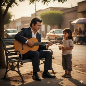 La niña dudó. Miró las manos de Juan Gabriel, luego el dinero, luego la guitarra, como si no supiera qué objeto pertenecía a qué emoción.
