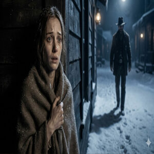 Ahora estaba acurrucada en el estrecho callejón detrás del saloon, entre los fardos de heno y una cerca rota. El lugar olía a moho, whisky agrio y arrepentimiento frío. Sus rodillas apretadas contra su pecho, sus manos metidas bajo sus muslos buscando el poco calor que pudiera encontrar.
