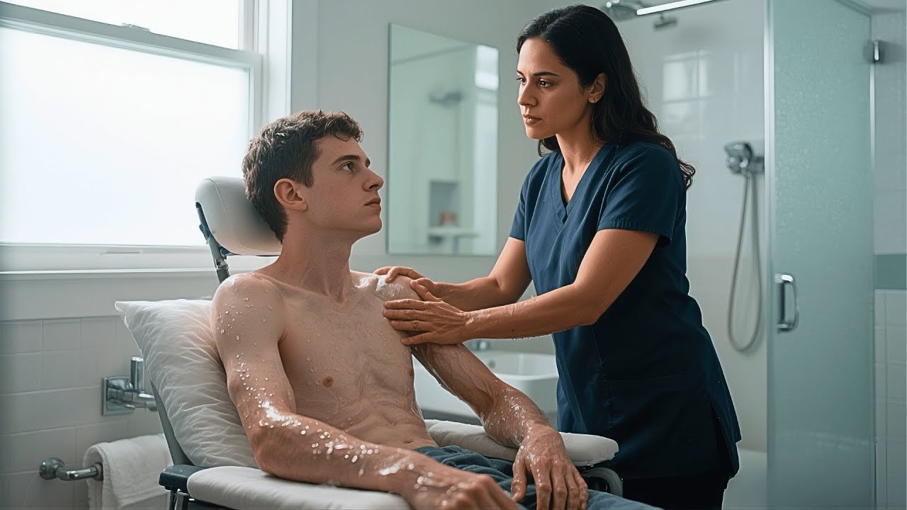 Trabajó con la eficiencia silenciosa que había aprendido al cuidar de su madre. Preparó todo: la palangana con agua tibia, las esponjas suaves, las toallas limpias, el jabón neutro. Le hablaba en voz baja, no tanto para calmarlo a él, que parecía en un estado de calma absoluta, sino para calmarse ella misma, para romper el hielo de aquella situación tan íntima y a la vez tan clínica. “Voy a ayudarte a sentarte un poco, ¿vale?” murmuró, accionando los controles de la cama para elevar suavemente el torso. Su cuerpo inerte se movió con la cama.