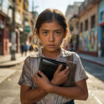 Isabelita quedó afuera con su mantita raída. Las campanas, dulces hace un rato, ahora medían la distancia hasta un hogar que la rechazaba. Caminó sin rumbo: las calles se volvían más bellas y más tristes con la luz dorada, el polvo se levantaba para acompañarla. Un perro quiso seguirla; ella lo disuadió: no tenía comida ni sombra que ofrecer. Pasó frente a la iglesia, recordó el reproche de la sacristana por sus pies descalzos y decidió que el cielo también escucha desde fuera. Cruzó la plaza, evitó miradas, tomó el camino de tierra hacia las huertas y llegó a las afueras. Eligió un mezquite grande: tronco torcido, sombra ancha. Se envolvió en su manta y se prometió no llorar, porque llorar con hambre duele más. Imaginó una casa con pan recién horneado y manos suaves peinándole el cabello.