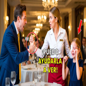 El restaurante La Vela Blanca, la joya de la alta sociedad madrileña, brillaba esa noche con luz de velas y risas elegantes. Pero en la mesa número cuatro, acurrucada en el rincón más oscuro, el ambiente era tan pesado que parecía a punto de romperse. Héctor Mendoza, el hombre que controlaba la mitad de la industria naviera española, estaba sentado rígido como una estatua. Su riqueza, su poder, la adulación social—todo se volvía insignificante al mirar a su hija de ocho años, Lucía, acurrucada en la silla de terciopelo rojo como un pajarito herido. Desde una fiebre alta y prolongada que le dañó el nervio óptico, cualquier luz ligeramente intensa podía dispararle un dolor punzante, como si alguien le apretara la cabeza desde dentro.