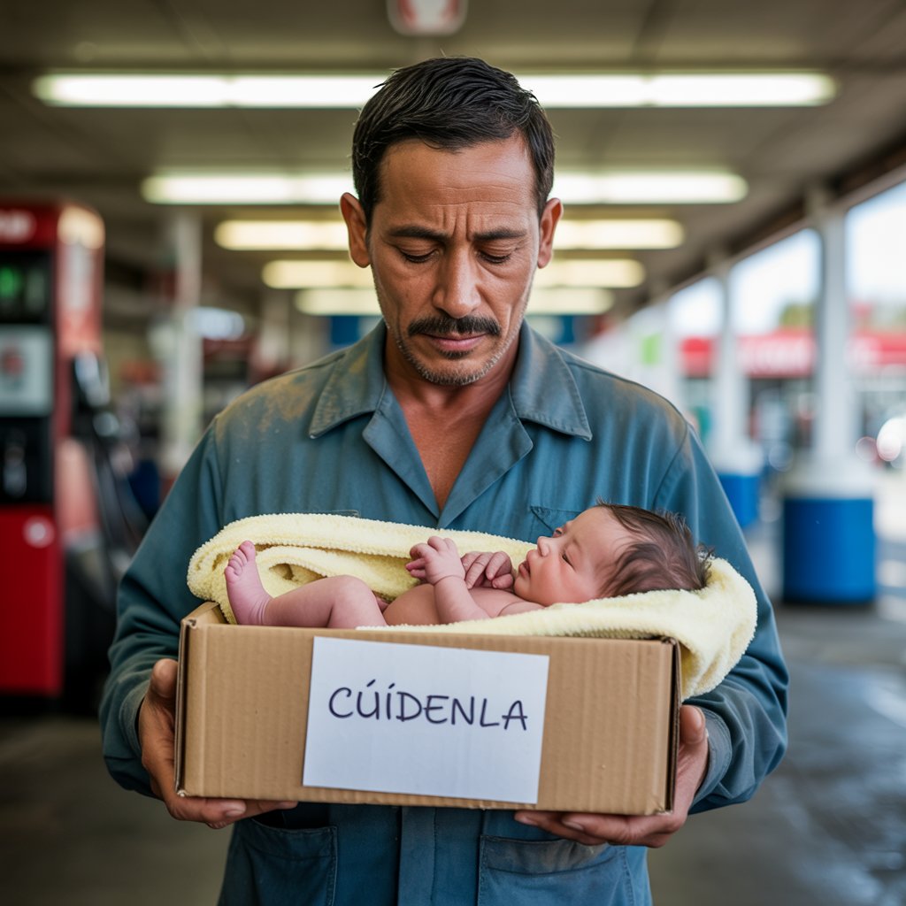 Un trabajador de una gasolinera encontró una caja en el baño, dentro de la cual había una recién nacida y una nota: “Cuídenla”. Se llevó a la niña a casa.