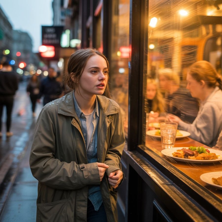 Caminaba por una avenida llena de restaurantes elegantes. Las luces cálidas, la música suave, las risas de los comensales… todo era un mundo ajeno al mío. Detrás de cada vidriera, familias brindaban, parejas sonreían, niños jugaban con sus cubiertos como si nada en la vida pudiera doler.