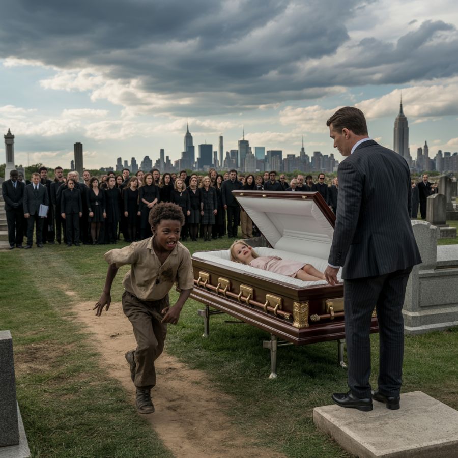 «¡Abran el ataúd! ¡Su hija todavía está viva!» — el niño negro sin hogar corrió hacia el ataúd y susurró un secreto que dejó al multimillonario impactado…