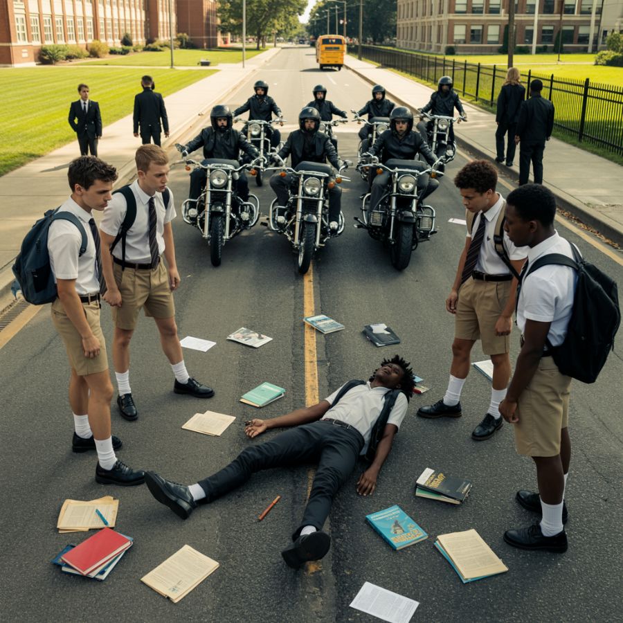 Algunos estudiantes cercanos observaban, pero no se movieron. Su silencio dolió más que el empujón. Marcus levantó la vista del suelo, con la vergüenza ardiendo en sus ojos, hasta que un nuevo sonido resonó en el aire.