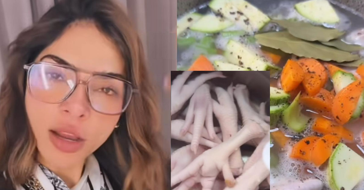 Alejandra Espinoza volvió a encender las redes sociales luego de compartir un video en el que anunciaba que prepararía un caldo de huesos, mostrando a cámara los ingredientes principales: patitas de pollo y otros huesos listos para la cocción.