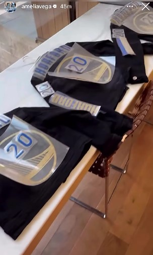 Amelia decidió hacer algo completamente especial: diseñó y confeccionó personalmente unas chaquetas para cada uno de sus hijos, con el apellido Horford y el número 20 bordados en la espalda.
