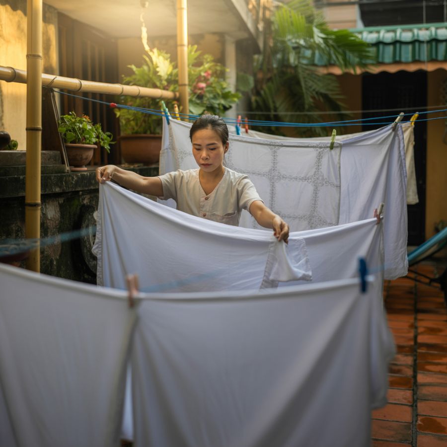 solo el aroma del detergente, la luz del sol entrando por la ventana
