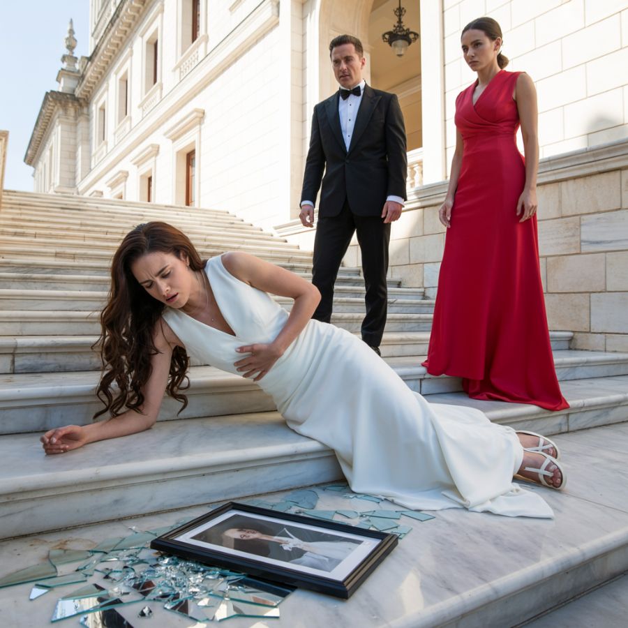 Los invitados exclamaron con asombro. La mano de Anna se tensó alrededor del marco que sostenía. La foto se le escapó y se hizo añicos contra el suelo de mármol, cortándole la palma con el cristal. Tropezó y se agarró a la barandilla.