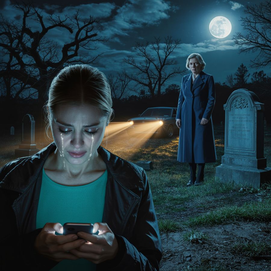 El cementerio estaba casi vacío cuando llegué; las puertas seguían abiertas bajo tenues luces amarillas. Seguí el sendero de grava hasta la tumba de mi madre, mientras mis faros iluminaban las filas de lápidas silenciosas.