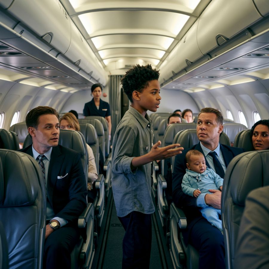 Cuando los llantos se redoblaron hasta el punto de que la auxiliar de vuelo pareció dispuesta a interponerse, Jamal respiró hondo. Todas las miradas convergieron en él cuando se levantó. — «Disculpe, señora…» —Su voz temblaba, tímida—. «¿Quiere que intente algo? Estoy acostumbrado a cuidar a mi hermana».