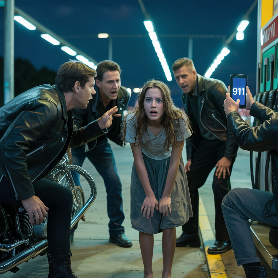 Una adolescente lloraba pidiendo protección a unos motociclistas en una gasolinera, quienes llamaron al 911, pensando que la estaban acosando. Desde mi camioneta, vi a los motociclistas vestidos de cuero rodeándola. Parecía tener unos 15 años, descalza y temblando con su vestido roto.