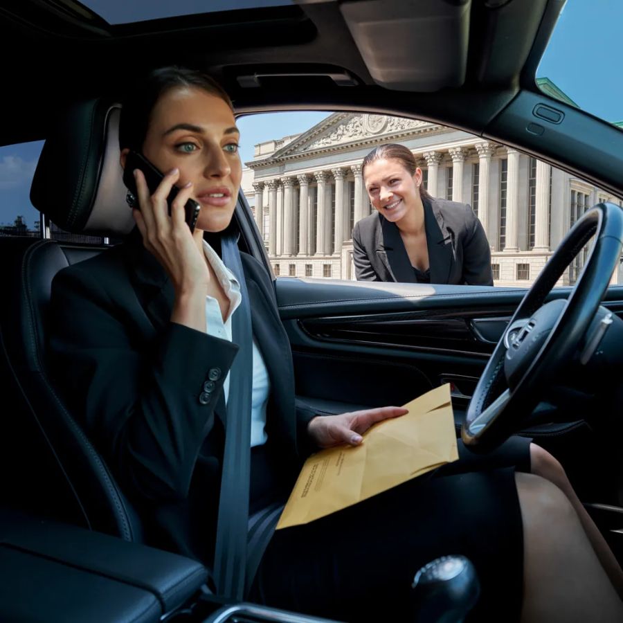 Detrás de mí, a través del parabrisas, pude ver a Evelyn saliendo del edificio, riéndose en su teléfono.