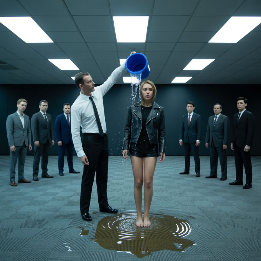 Julián caminó hasta el dispensador de agua, tomó una cubeta de limpieza que estaba junto a la fotocopiadora y regresó hacia Isabel con pasos calculados. La oficina cayó en un silencio mortal. Todos sabían que algo terrible estaba a punto de suceder, pero nadie se atrevió a intervenir.
