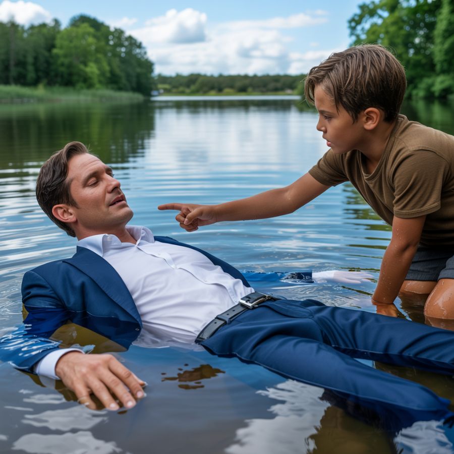 ” Sin pensarlo dos veces, se quitó su camiseta rasgada y se lanzó al agua desde la orilla.