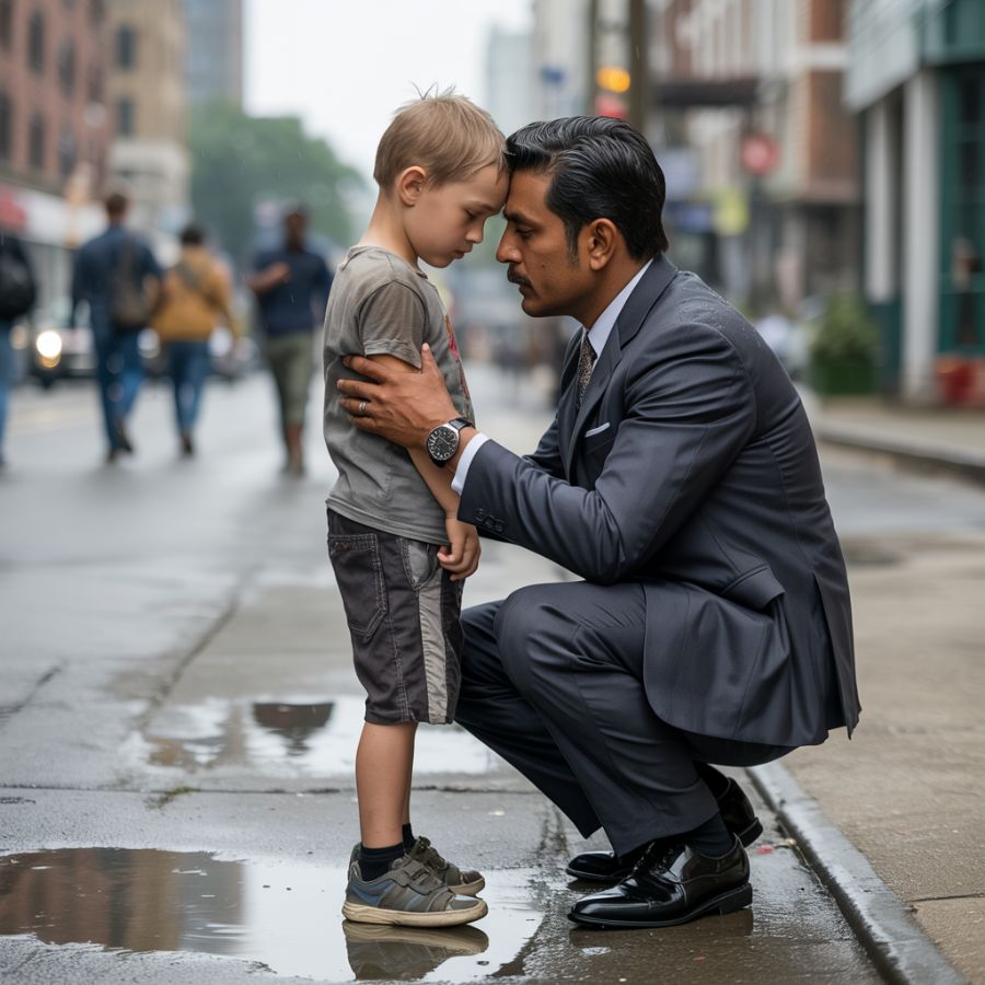Una tarde de otoño, tras terminar una tensa negociación en el centro, David se bajó de su coche negro y caminó hacia una pequeña cafetería. Necesitaba un café —fuerte, solo y rápido— antes de ir a recoger a Ethan a la escuela. Al pasar por un callejón estrecho, vio una pequeña figura sentada en la acera.