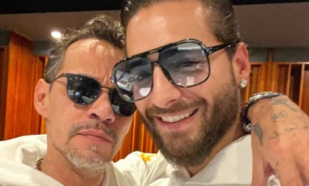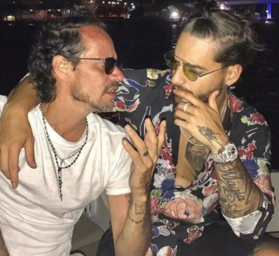Marc, siempre efusivo, no dudó en acercarse con cariño y dejarle un beso en la mejilla a Maluma, mientras lo abrazaba con fuerza.