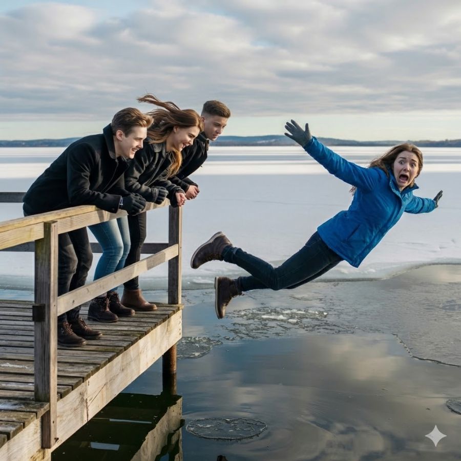 Aquel fin de semana junto al lago, el viento cortaba la piel. Nora llevaba una chaqueta gruesa, abrazándose a sí misma. Su esposo, Lucas, se burló de inmediato.