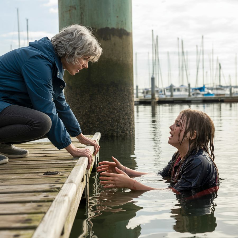 La vi cerca del borde del Muelle C, medio escondida entre dos botes. Tenía la ropa empapada. Tenía el pelo enredado con algas. Por un instante, pensé que era demasiado tarde.