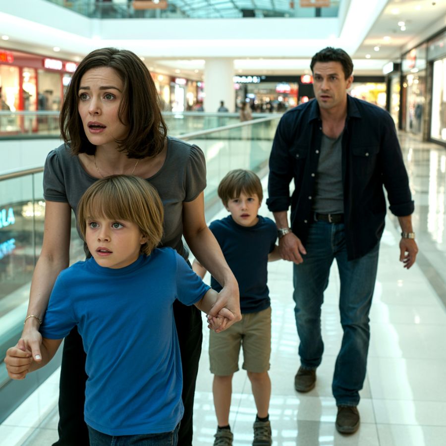 Estaba en el centro comercial con mi hijo de cinco años, Ethan , una tarde de sábado cualquiera. Discutíamos si necesitaba calcetines con sus zapatillas nuevas cuando, de repente, dejó de caminar. Su pequeña mano apretó la mía y señaló hacia el atrio central.