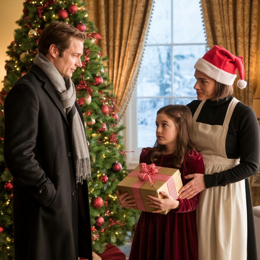 En ese momento, Lena Brooks , su criada, entró silenciosamente. Estaba terminando su turno. Su hija de cuatro años, Mia , la seguía con un gorro rojo de Papá Noel demasiado grande para su cabeza. Estaban listas para irse a dormir.
