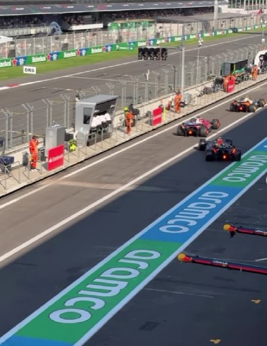 Aunque estaban acreditadas en la zona premium del paddock, su acceso fue momentáneamente bloqueado por una confusión con la lista de invitados.