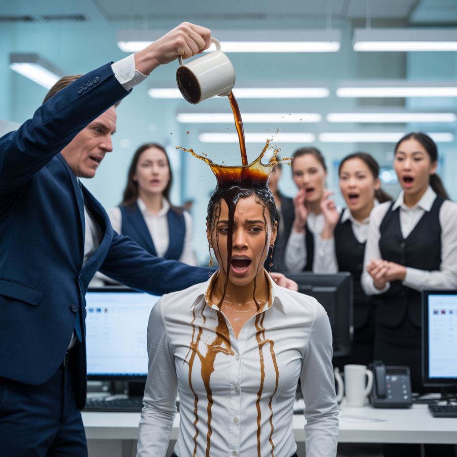 Angela corrió al baño, con el corazón palpitando. Intentó limpiar las manchas de café, pero la blusa estaba arruinada. Más que la incomodidad física, fue la humillación —el despojo total de su dignidad frente a sus compañeros— lo que más le dolió. Pensó en sus opciones: denunciar a Dan a Recursos Humanos, irse o simplemente guardar silencio como tantos lo habían hecho antes.
