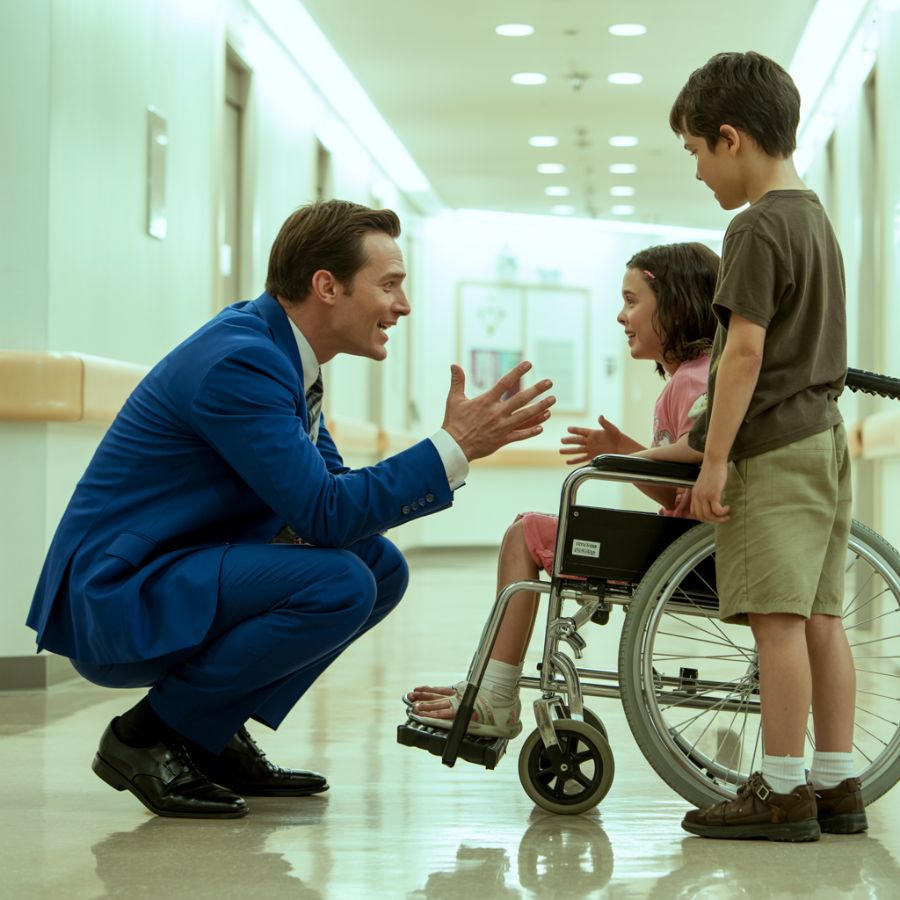 Aquel día, mientras la fisioterapeuta Ana intentaba, por enésima vez, que la niña extendiera la pierna derecha, Eduardo salió al pasillo para respirar. El hospital privado, frío y brillante, olía a desinfectante y a esperanza vencida. Fue entonces cuando escuchó una vocecita: