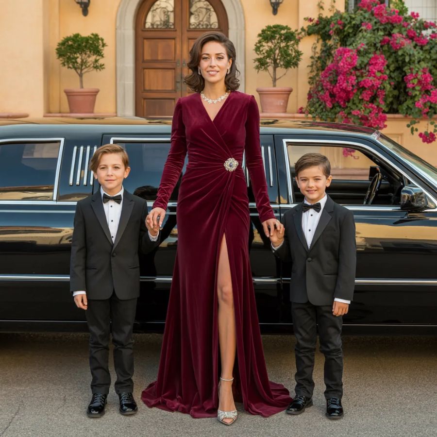 Vestía un vestido de terciopelo rojo, diseñado por una casa de alta costura de París.