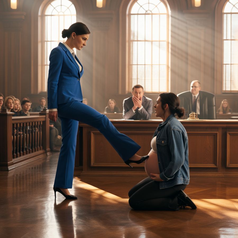 Entonces ocurrió lo impensable. Durante un receso breve, cuando los abogados se acercaron a hablar con el juez, Claudia se levantó y se aproximó a Valeria. Sin decir palabra, con el rostro desencajado por el odio, le dio una patada directa en el abdomen. El golpe resonó en la sala. Valeria cayó al suelo, gritando de dolor, protegiendo instintivamente a su hijo.