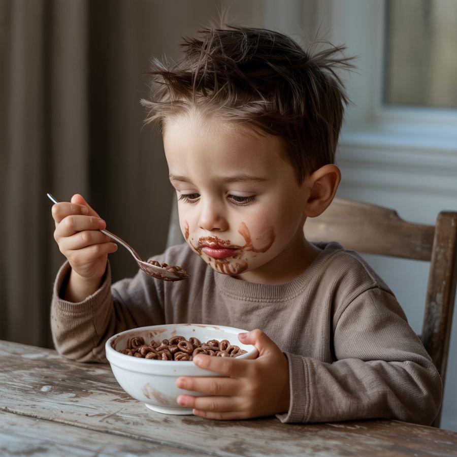 El chico dudó, luego la siguió lentamente. No dijo ni una palabra. Su ropa era poco más que harapos, su cabello enmarañado y despeinado. María lo condujo a la cocina trasera y lo sentó en la mesita cerca de la despensa.