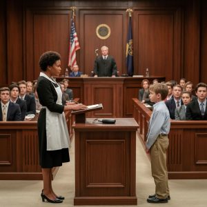 La empleada doméstica acusada por un rico hombre de negocios entró al tribunal sola, sin abogado que la defendiera, hasta que su hijo dio un paso adelante y expuso la verdad que lo cambió todo.