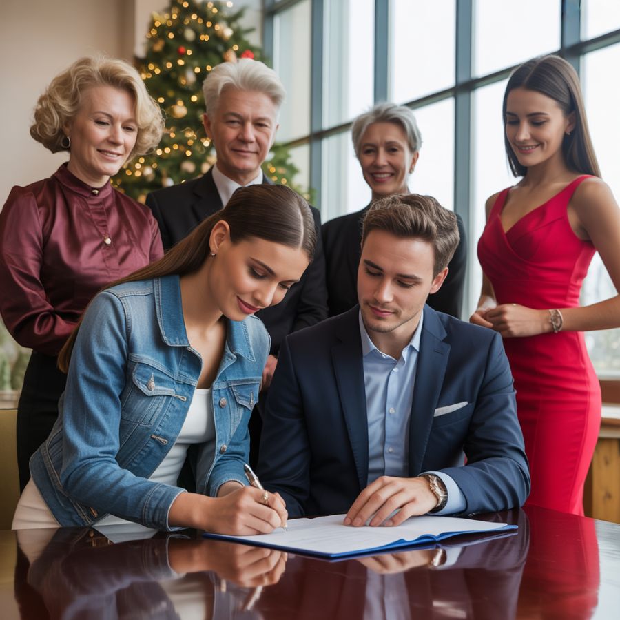 El salón de la mansión Thorne resplandecía con la opulencia de una Navidad de ensueño. Guirnaldas de abeto natural, luces de cristal y el champán más caro de Europa fluían entre invitados vestidos de etiqueta. Sin embargo, en un rincón sombreado del balcón, Arya Miller —como todos la conocían— sostenía una pluma con dedos temblorosos. Frente a ella, sobre una mesa de mármol, descansaban los papeles del divorcio. Con una lágrima rodando por su mejilla, firmó el documento, poniendo fin a cinco años de un matrimonio que se había convertido en su propia cárcel de cristal.