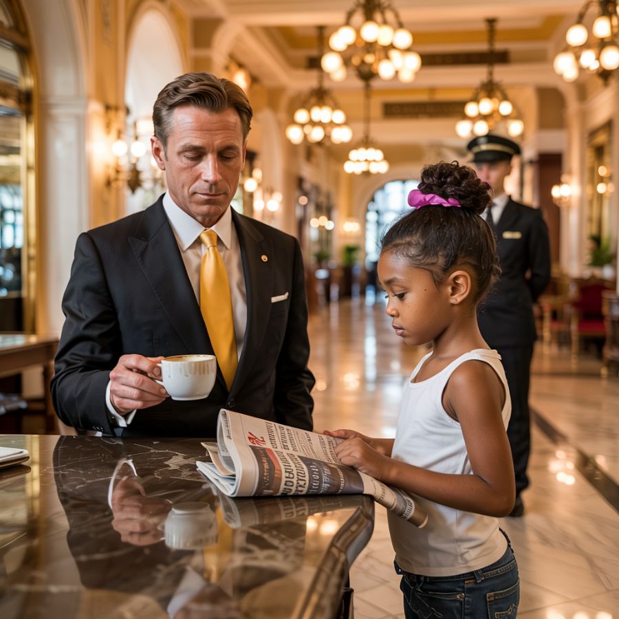 Esa mañana, Richard Von Hartmann , un multimillonario alemán con fama de arrogante, entró con paso decidido. Su traje caro, sus gemelos de plata y el ligero aroma a puros importados anunciaron su presencia antes de hablar. Cuando Marcus lo saludó con su habitual calidez, Richard se limitó a asentir con desdén. Pero cuando el portero mencionó el talento lingüístico de su hija, Richard sonrió con suficiencia.