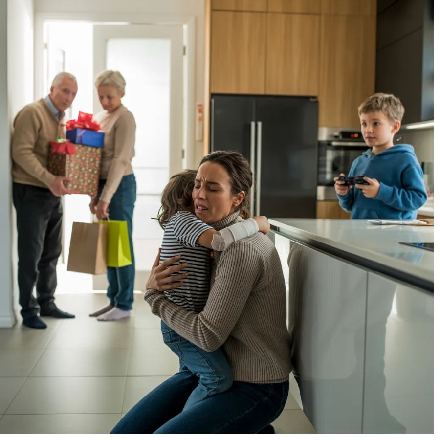Riley asintió lentamente. Madison le besó la frente. Entonces escuchó risas desde el vestíbulo. Se abrió la puerta. Crujieron bolsas de compras. Gritos emocionados, infantiles, llenaron la casa.