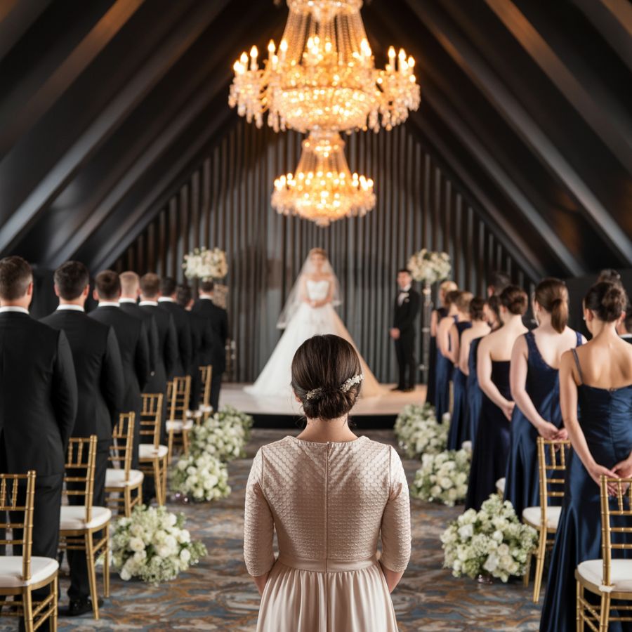 El día de la boda llegó. Me arreglé con un vestido sencillo y caminé hacia el salón de celebraciones. Al entrar, sentí que todas las miradas se giraban hacia mí. Entonces la vi. Valeria estaba en el centro del salón… vistiendo exactamente el vestido que yo había cosido. Su rostro se volvió pálido al verme. Por un segundo, parecía que iba a desmayarse.