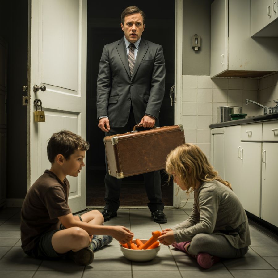 En la cocina encontré la escena que me rompería para siempre: mis hijos, Lucía y Daniel, acurrucados sobre el suelo helado, compartiendo un cuenco con agua del grifo. En él flotaban cáscaras de zanahoria secas, casi transparentes.