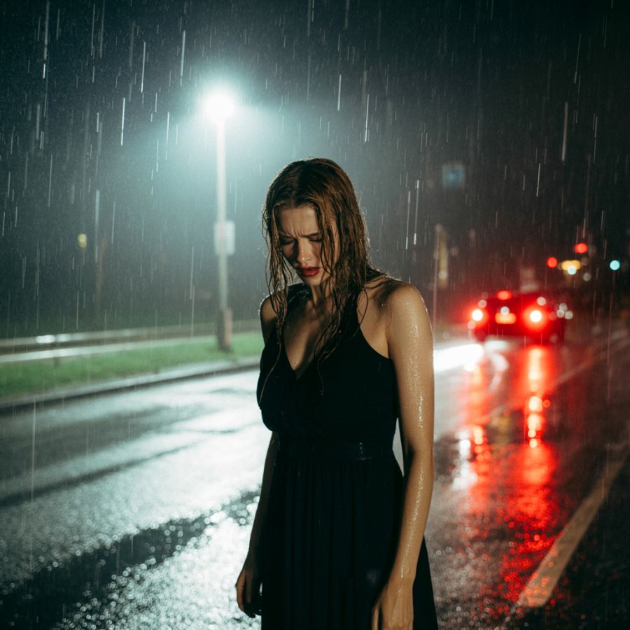 No grité. No supliqué. Salí a la lluvia con los talones hundiéndose en la grava. Se alejó sin mirar atrás, sus luces traseras desapareciendo en la tormenta. Me quedé allí, empapada en segundos, con el pelo pegado a la cara y el vestido destrozado.
