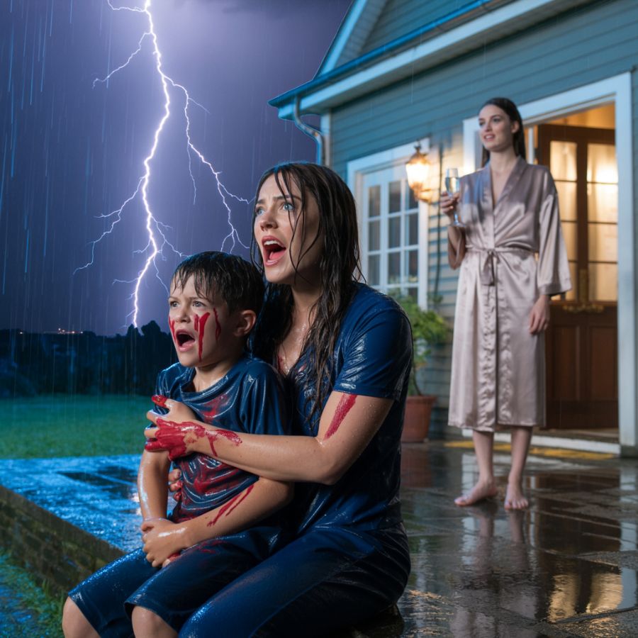La sangre se me heló cuando abracé a mi hijo de seis años, empapado y temblando, abandonado en el porche bajo una tormenta implacable. El viento azotaba la casa y la lluvia le pegaba la ropa al cuerpo pequeño. Su mochila estaba volcada en el suelo; los cuadernos se deshacían bajo el agua.